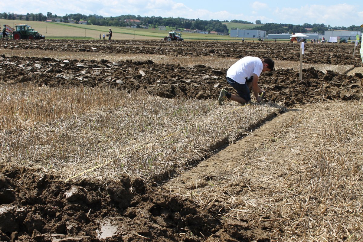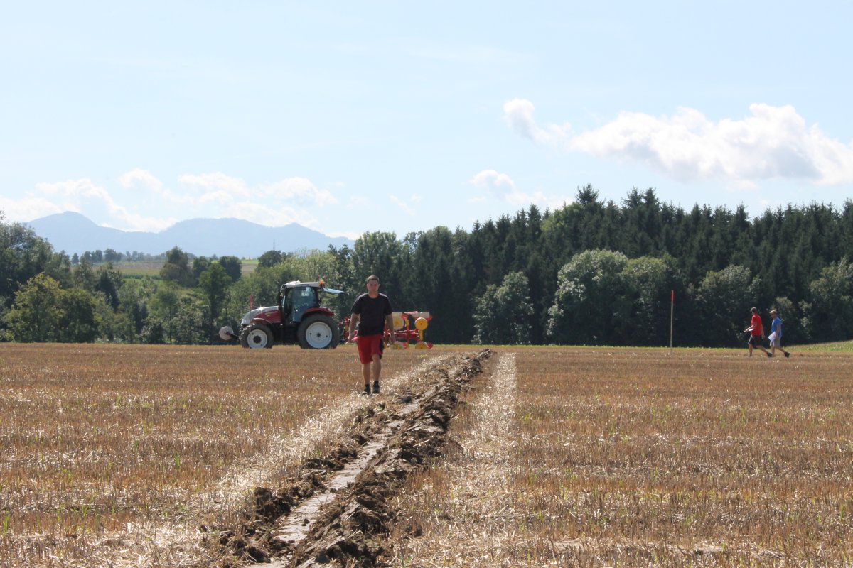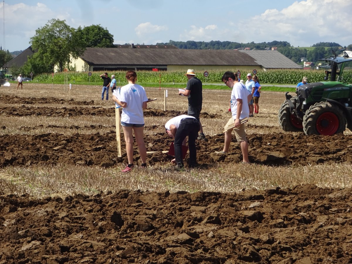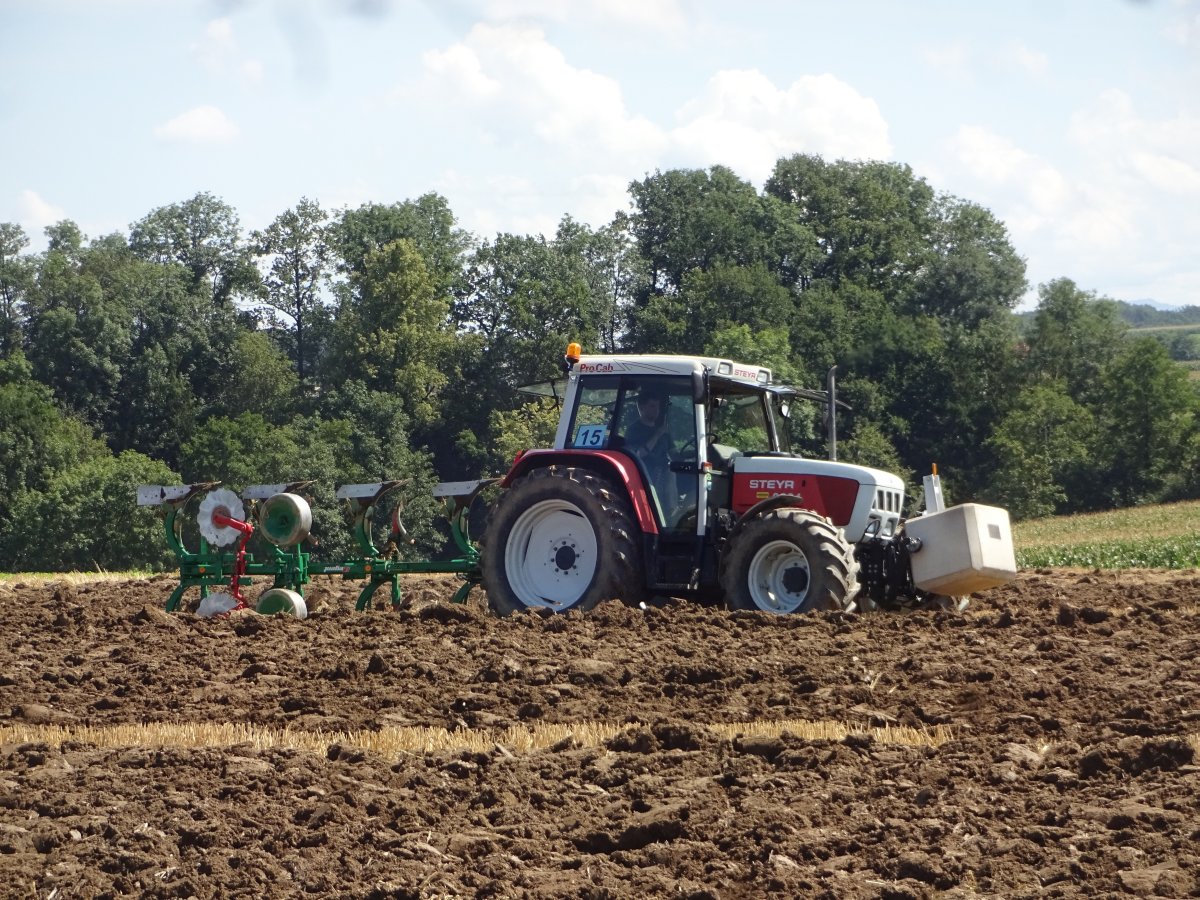 Um 11:10 Uhr fiel der Startschuss zum Bezirkspflügen. Es wurde gemessen, an den Pflügen geschraubt und sich über 3 Stunden voll konzentriert. Es ging um Sauberkeit, Gleichmäßigkeit, einen exakten Abschluss zur Nachbarparzelle und um das Einpflügen des gesamten Strohs. Außerdem sollten die Furchen möglichst gerade sein. Allesamt schwierige Aufgaben, denen sich heuer 16 Teilnehmer (10 aus Kirchdorf und 6 aus Steyr) stellten.