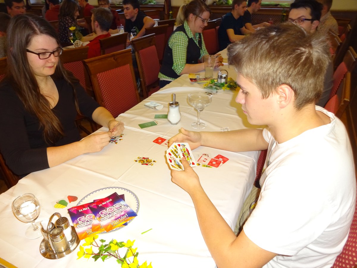 Beim Bezirksschnapsturnier am 13. März 2016 traten die Teilnehmer/innen im K.-o.-System gegeneinander an.