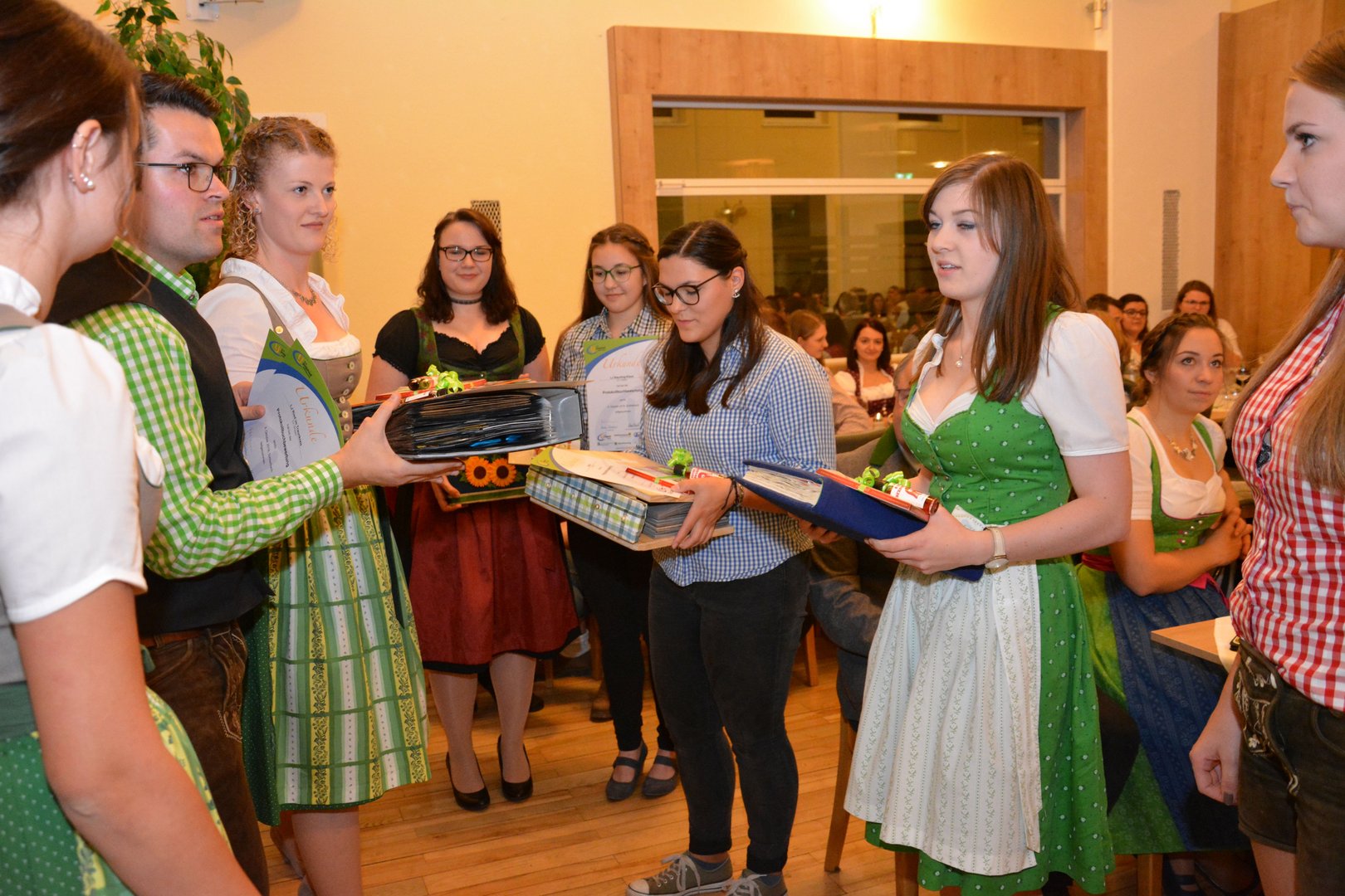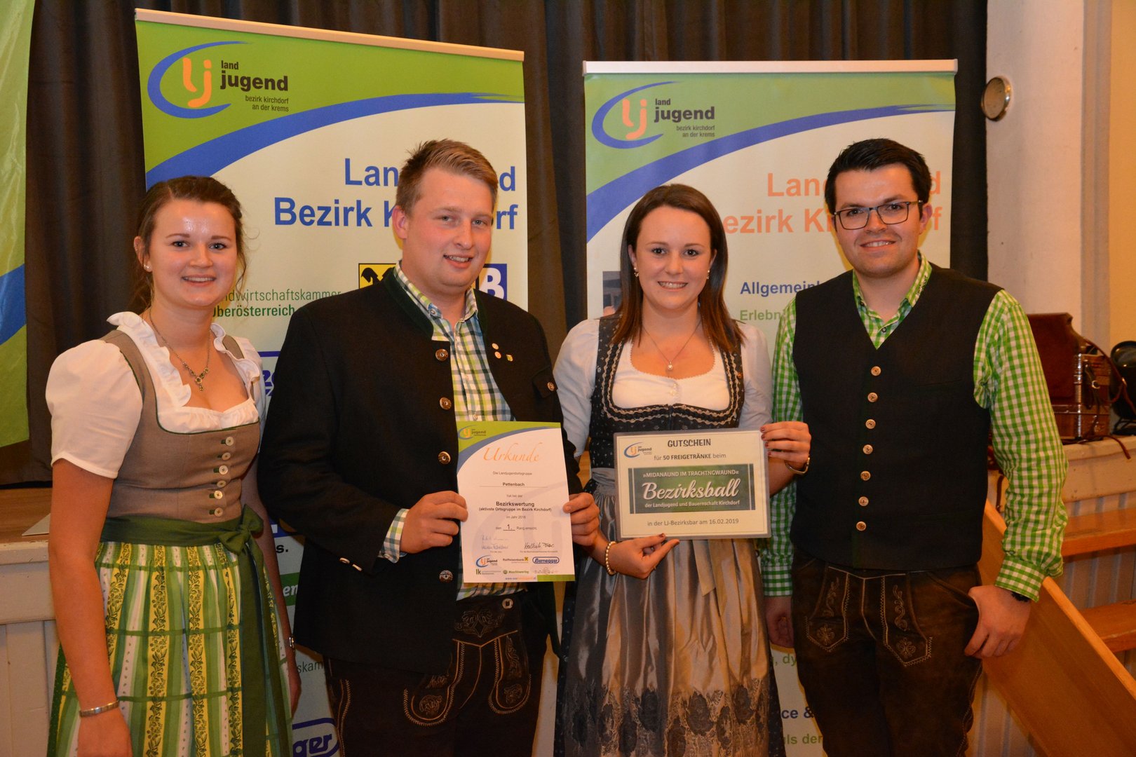 Am Donnerstag, 25. Oktober 2018 ging die die Herbsttagung der Landjugend Bezirk Kirchdorf über die Bühne. Der Bezirksvorstand lud die Landjugendortsgruppen in die Dorfstub`n nach Inzersdorf zum gemeinsamen Beisammensein ein. Das vergangene LJ-Jahr wurde mit einem kreativen Bilderrückblick präsentiert und unter anderem wurden die erfolgreichen Bewerbsteilnehmer/innen auf Landes- und Bundesebene und deren Leistungen geehrt. Den Titel für die aktivste Ortsgruppe im Bezirk Kirchdorf holte sich die LJ Pettenbach vor der LJ Grünburg-Steinbach und Wartberg. Der aktivste Bursch in Kirchdorf war im Jahr 2018 Martin Rapberger (Pettenbach) und das aktivste Mädchen war Anna Tiefenthaler (Pettenbach). Ergebnis der Protokollbuchbewertung: 1. Platz - Pettenbach 2. Platz - Inzersdorf 3. Platz - Grünburg-Steinbach 3. Platz - Kremsmünster Weiters haben teilgenommen: Molln, Ried/Traunkreis, Steyrling-Klaus Wartberg und Windischgarsten. Wir gratulieren allen Ortsgruppen zu den tollen Protokollbüchern. Nachdem auch die Kassa des Bezirks für in Ordnung befunden wurde, regten die Grußworte der zahlreichen Ehrengäste erneut zu einem gemeinsamen, verantwortungsvollen Denken und Handeln an. Ein besonderer Dank gilt unseren zahlreichen Sponsoren, wie die Raiffeisenbank und der Maschinenring. Diese wiederum bedankten sich für die gute Zusammenarbeit und sicherten der Landjugend auch fürs nächste Jahr finanzielle Unterstützung zu. Auch der Landesvorstand der Landjugend OÖ folgte der Einladung des Bezirks Kirchdorf und zeigte den Mitgliedern was im letzten Jahr auf Landesebene alles los war. Landesleiterin Stv. Christina Ripota und Stefanie Almhofer konnten einige Leistungsabzeichen an Mitglieder des Bezirksvorstandes verleihen. Vergebene Leistungsabzeichen: Gold - Magdalena Lang (Pettenbach) Silber - Marlene Federlehner (Inzersdorf) Bronze - Thomas Pürstinger (Wartberg an der Krems) Bronze - Markus Schmeißl (Windischgarsten) Verabschiedung eines Vorstandsmitgliedes Leider mussten wir auch heuer ein Vorstandsmitglied aus dem Bezirksvorstand verabschieden: - Caroline Pirkner (1 Jahr Leiterin Stv.) Wir bedanken uns bei Caro nochmals recht herzlich für die Arbeit die sie geleistet hat und für den Spaß, den wir mit Ihr haben durften. Neugewählter Vorstand Nach den Verabschiedungen der scheidenden Vorstandsmitglieder wurde ein neuer Vorstand gewählt.